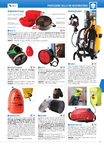 PM0230 - respiratore POLIBLITZ con filtro ABEK PM0369 - dispositivo di fuga Blitz 5 con filtro PC5126 - autorespiratore DIABLO C 607 SP/A,