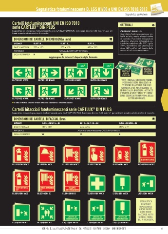 Segnaletica di emergenza fotoluminescente serie CARTLUX DIN PLUS, luminanza di circa 140 mcd/m , per am- CARTLUX DIN PLUS