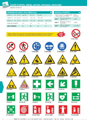 DIMENSIONI DEI CARTELLI SOLO SIMBOLO (mm) MATERIALI A RICHIESTA