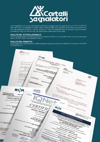 Cartelli Segnalatori produce segnaletica stradale verticale secondo quanto previsto dal certifi cato   di conformità n° 0474-CPD-