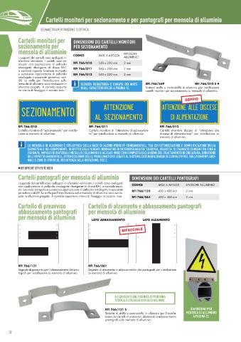 Cartelli monitori per sezionamento e per pantografi per mensola di alluminio