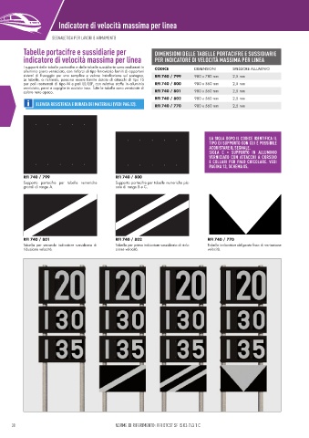 I supporti delle tabelle portacifre e delle tabelle sussidiarie sono realizzati in CODICE DIMENSIONI SPESSORE ALLUMINIO