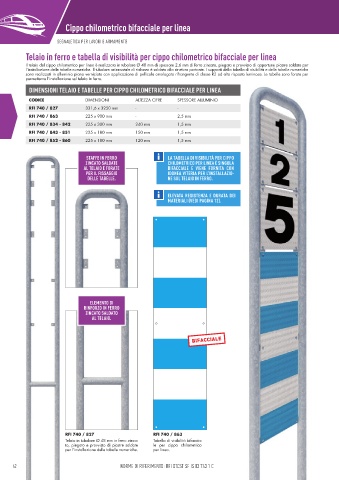 DIMENSIONI TELAIO E TABELLE PER CIPPO CHILOMETRICO BIFACCIALE PER LINEA