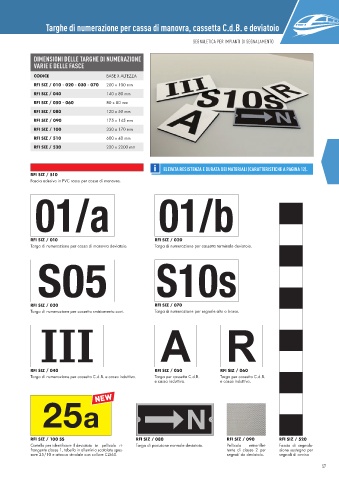 Targhe di numerazione per cassa di manovra, cassetta C.d.B. e deviatoio