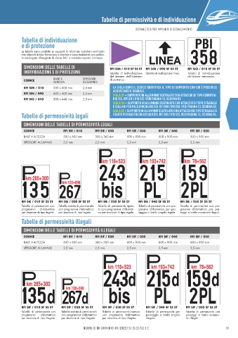 DIMENSIONI DELLE TABELLE DI PERMISSIVITÀ LEGALI