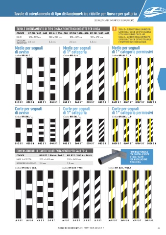 TAVOLE ORIENTAMENTO DI TIPO DISTANZIOMETRICO RIDOTTE PER LINEA SIGLA S = SUPPORTO IN ALLUMINIO PIE-