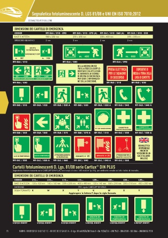 70 70 NORME: RFI DTCST SF IS 03 743 1 C - RFI DTC ICI ST GA 001 A - D. Lgs. 81 del 09/04/08 Titolo V - Dir. 92/58/CEE - UNI 7543 - DIN 67510 - ISO 3864 - UNI EN ISO 7010 71