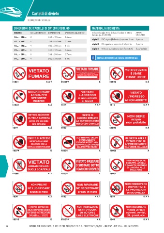DIMENSIONI DEI CARTELLI DI DIVIETO E OBBLIGO MATERIALI A RICHIESTA
