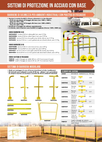 BARRIERE DI SICUREZZA PER AMBIENTI INDUSTRIALI CON PIASTRA DI FISSAGGIO