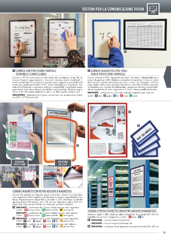 1 CORNICE CON PROTEZIONE FRONTALE 2 CORNICE MAGNETICA PER FOGLI