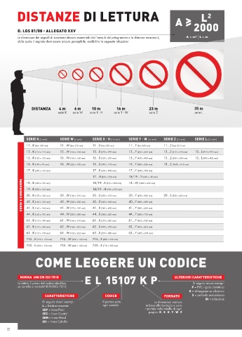 Le dimensioni dei segnali di sicurezza devono essere tali che l’area A del pittogramma e la distanza massima L, A = m L = m