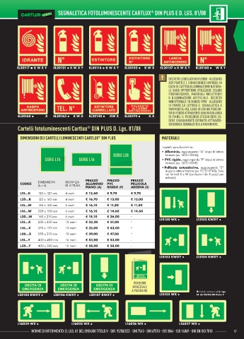 SEGNALETICA FOTOLUMINESCENTE CARTLUX DIN PLUS E D. LGS. 81/08
