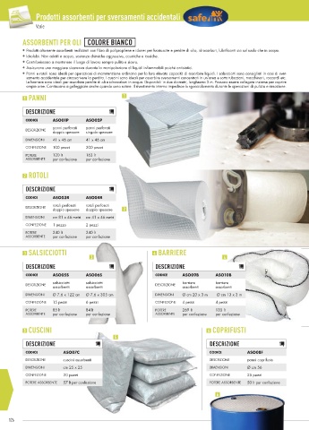 samento accidentale per circoscrivere la perdita. I cuscini sono ideali per assorbire sversamenti concentrati in un’area e sotto tubazioni, macchinari, raccordi etc.