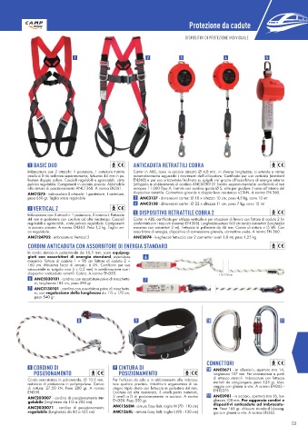 in acciaio zincato. A norma EN361. Peso 1,2 kg. Taglia uni- massima con connettori 2 mt). Fettuccia in poliestere da 46 mm. Carico di rottura >15 kN. Con