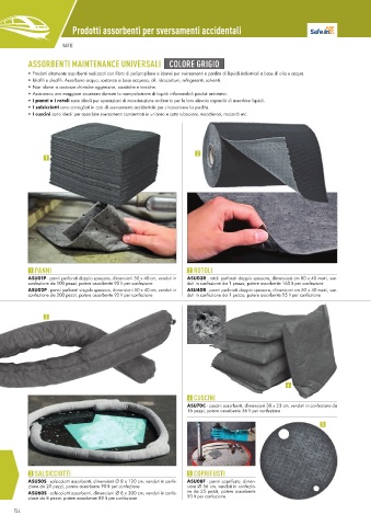 • Prodotti altamente assorbenti realizzati con fi bra di polipropilene e idonei per sversamenti e perdite di liquidi industriali a base di olio e acqua.