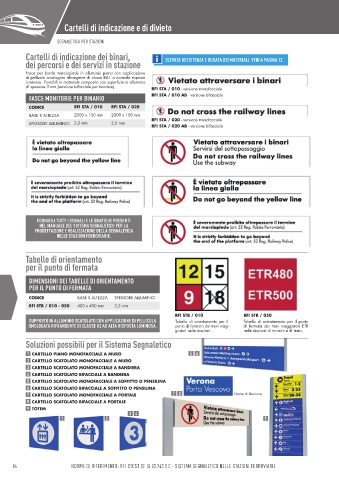 Cartelli di indicazione dei binari, ELEVATA RESISTENZA E DURATA DEI MATERIALI. VEDI A PAGINA 12.