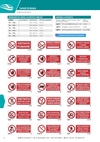 DIMENSIONI DEI CARTELLI DI DIVIETO E OBBLIGO MATERIALI A RICHIESTA