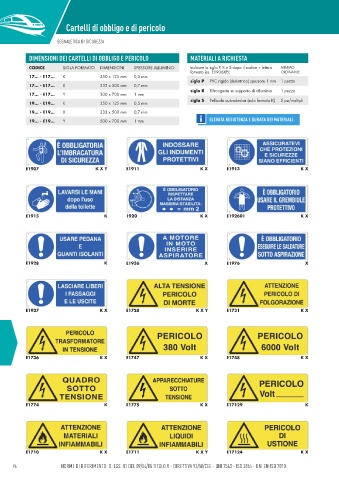 DIMENSIONI DEI CARTELLI DI OBBLIGO E PERICOLO MATERIALI A RICHIESTA