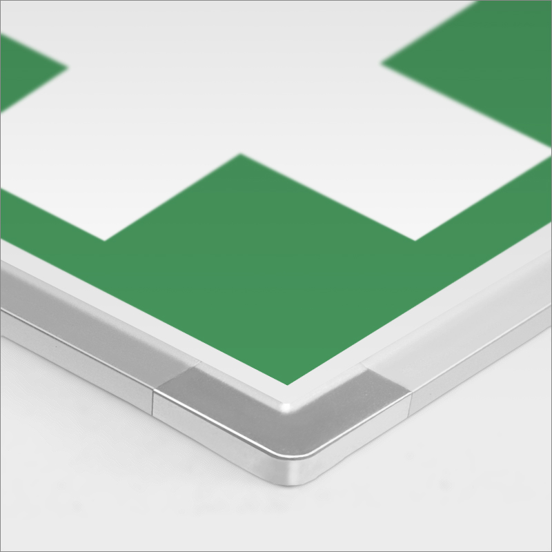 Segnaletica in alluminio "METAL" Adatto per soluzioni eleganti da interni Elegante sistema di segnaletica costituito da un supporto in alluminio anodizzato (spessore 4 mm - pannello anteriore di 1,2 mm serigrafato) con cornice smussata. Fornito con i relativi sistemi di fissaggio (viti e tasselli). Disponibile in versione monofacciale, bifacciale a bandiera e bifacciale sospesa. 2 tipologie: Interamente in alluminio - in alluminio con angoli in metallo pressofuso colore argento; Profili in PVC colorati - in alluminio con profili in PVC colorati (verde, rosso o grigio). Linea METAL monofacciale: fissaggio invisibile e semplice tramite viti - compreso nella fornitura. Linea METAL monofacciale per planimetrie: targa singola. La planimetria, stampata su supporto adesivo, viene applicata sulla targa in alluminio. Formato A3 (420 x 297 mm) per utilizzo verticale o orizzontale. Si fissa al muro con un sistema invisibile e semplice che si applica alla parete con viti comprese nella fornitura. Grafica realizzabile a nostra cura in stampa digitale, dietro fornitura di file esecutivo di stampa (a richiesta è fornibile la vostra planimetria rielaborata secondo la Norma uni iso 23601:2009) Linea METAL bifacciale a bandiera: due cornici smussate (spessore 4 mm). Si applica al muro con un sistema di fissaggio laterale in alluminio (necessaria una chiave a brugola - codice SEMKEY - da ordinare separatamente) compreso nella fornitura. Linea METAL bifacciale sospesa: due cornici smussate (spessore 4 mm). Si applica al soffitto con cavi d’acciaio (sospensione dal soffitto variabile fino ad un massimo di 1 m di distanza - necessaria una chiave a brugola - codice SEMKEY - da ordinare separatamente) - compresi nella fornitura. Segnaletica METAL