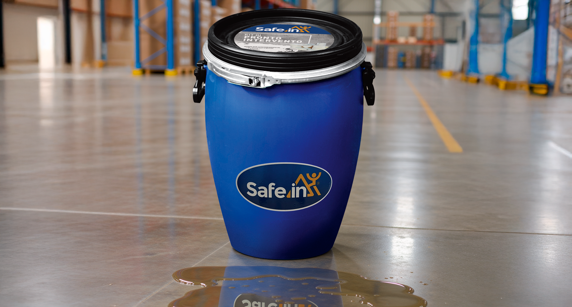 • Kit SafeIn® in bidone carrellato: la soluzione mobile e capiente per aree ad alto rischio.