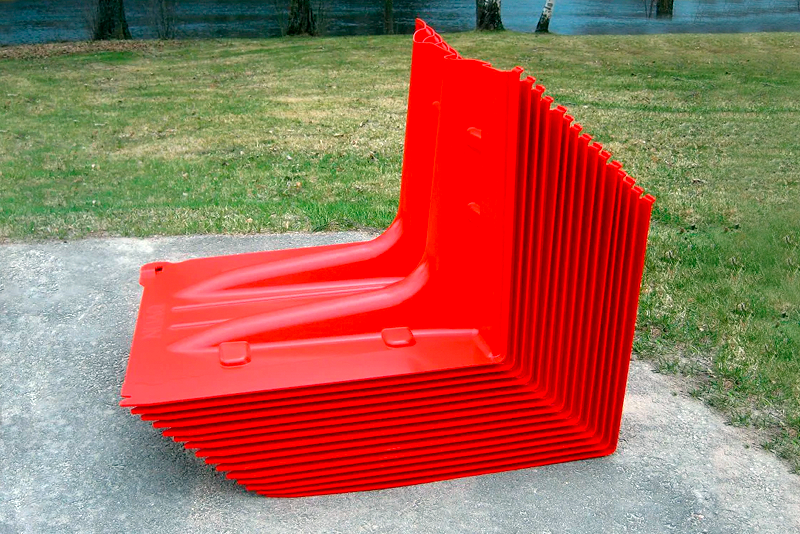 Mediante semplici incastri, il montaggio diventa rapido e modulabile all’infinito, con la possibilità di creare curve e angoli grazie a elementi angolari appositi. I moduli, oltre a essere leggeri e maneggevoli, sono impilabili e compatti: un solo bancale da 80 x 120 cm contiene 23 metri di barriera.