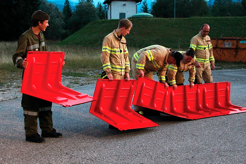 Boxwall è una barriera anti-allagamento mobile in plastica ABS di alta qualità stampata a iniezione con protezione UV. Leggera e facile da trasportare, resiste a temperature da –30°C a +90°C.