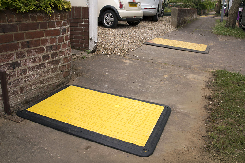 Pedana di copertura carrabile Low-Pro, antiscivolo, ideale per scavi e buche con larghezza massima di 700 mm per il passaggio di pedoni. Dimensioni 120 x 80 x altezza 2,8 mm. Peso 18 kg. Portata 400 kg.