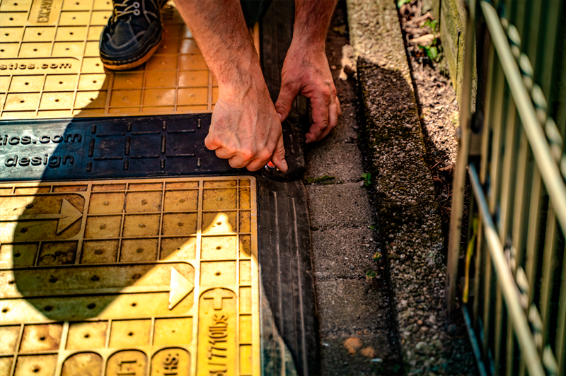 La superficie della pedana Low-Pro è completamente antiscivolo, garantendo così una trazione sicura e affidabile per pedoni e veicoli in ogni condizione atmosferica. Per garantire la massima versatilità e integrazione, sono presenti degli appositi fori angolari: questi permettono non solo l'ancoraggio sicuro al suolo per installazioni a lungo termine, ma anche il fissaggio modulare tra le diverse unità, consentendo di coprire agevolmente aree di lavoro più estese o irregolari.