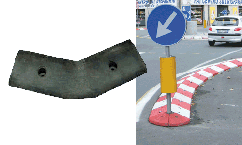 45° colore nero, h 150 x 300 x 250 + 250 mm, peso kg 22. Per realizzare isole rotatorie,