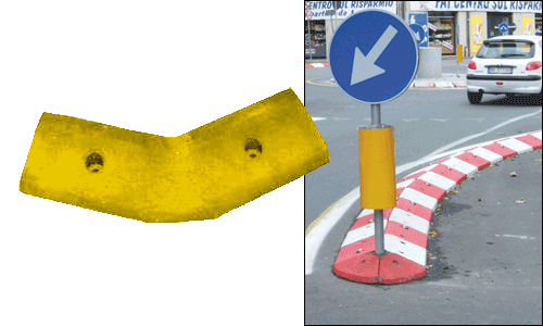 45° colore giallo, verniciato rifrangente, h 150 x 300 x 250 + 250 mm, peso