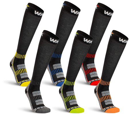 da 6 paia calze invernali altezza ginocchio, colori assortiti. Composizione: 25% lana